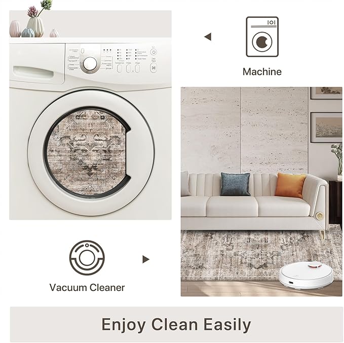 - Machine Washable: Our boho area rug is designed for convenience and fits seamlessly into any lifestyle. Machine wash with cold water on gentle cycle (not to add bleach), air dry or dry on air-only cycle without heat. For daily upkeep, use a vacuum cleaner or a quick wipe. Its VERY THIN design allows for easy removal of pet hair and other debris.