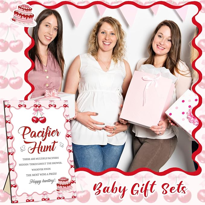 - Cherry Design: the pacifier hunt wood board sign is printed with lovely cherry and pink bow, fitting the party theme; Additionally, the text displayed on the surface is interpreted so you can immediately grasp how to play this game
