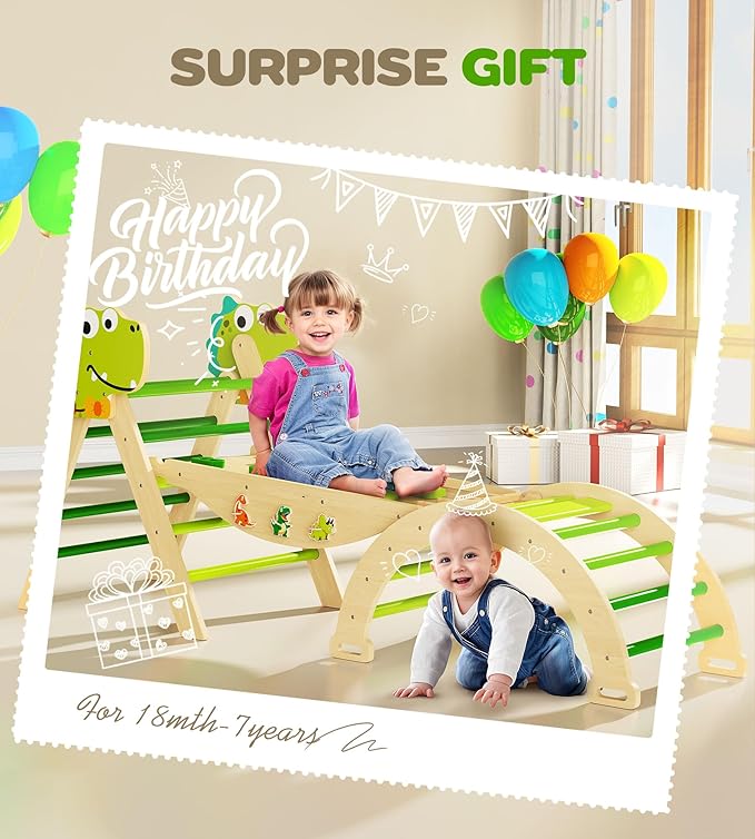 - Jungle Gym Adventure: Don't miss their growth. Step away from screens, start an adventure with your child! The Pikler triangle set for toddler 1.8-7 grows with them as they climb, balance and explore—building confidence, creativity & physical skills