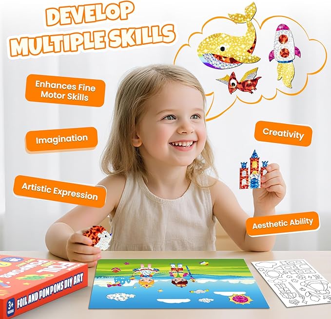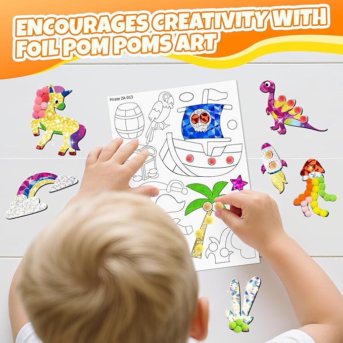 - Great Gifts & Prizes for Kids: Our foil pom poms art kit is an ideal gift for kids ‌aged 4 to 12‌ on ‌Children's Day‌, birthdays, Easter, Halloween, Thanksgiving, New Year, Christmas holidays, ‌and other occasions‌. It can also be used ‌as‌ activity rewards for ‌school projects‌, ‌art classes‌, school supplies, craft projects, ‌indoor family fun days‌, and ‌outdoor travel toys‌. ‌Providing endless fun‌, it inspires children's imagination and creativity