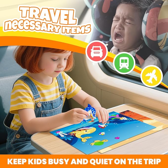 - Safe and Mess-Free: Our foil and pom-poms DIY art fun kit is made from non-toxic materials that meet children’s toy safety standards. The kids' toys don't need scissors, paint, or glue, and can keep your kids' hands and clothes clean. They are perfect as travel games or travel toys for toddlers aged 3-5, helping girls and boys stay entertained and quiet on long car rides or airplane trips