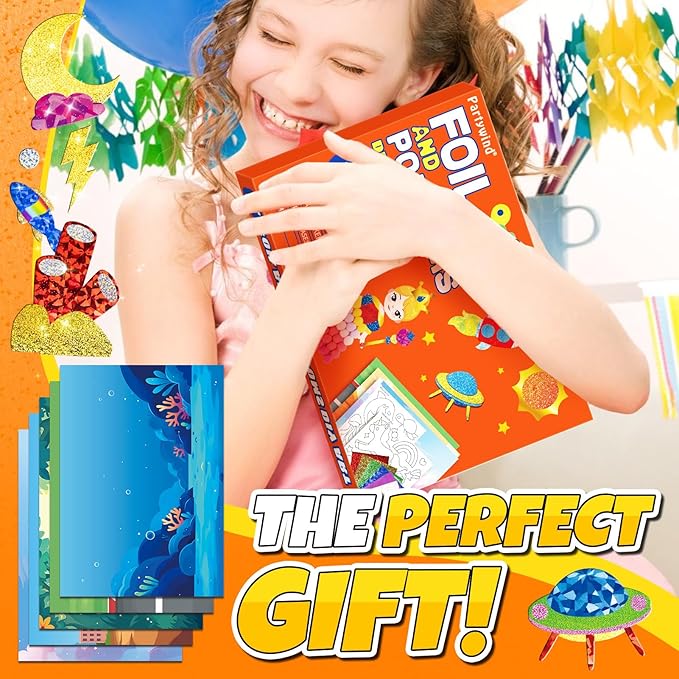 - Build Key Skills: Spark creativity & develop essential skills with our magical mess-free foil crafts! This vibrant sensory activity enhances fine motor skills, hand-eye coordination, and artistic expression while encouraging storytelling. Perfect for creating festive decorations or imaginative art, screen-free fun that grows young minds through hands-on learning