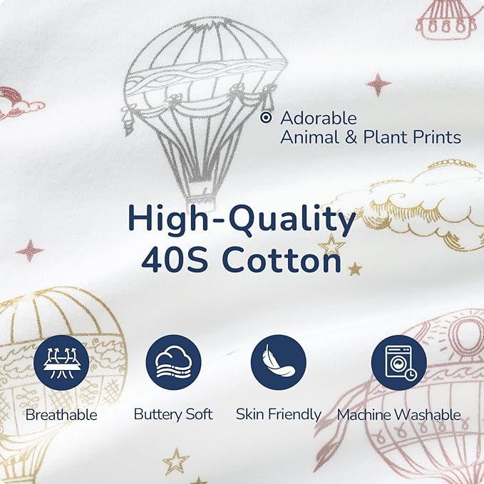 Baby Sleep Sack 6-12 Months, Cotton Detachable Long Sleeve Sleep Sack, 1.0 Tog Toddler Sleeping Sack with Temperature Strips, 2-Way Zipper Wearable Blankets for Newborns, Hot Air Balloon