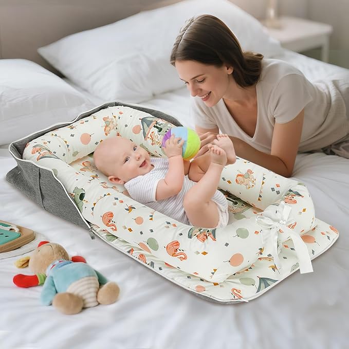 Baby Lounger, Portable Infant Lounger for Newborn, Adjustable Size Baby Nest for Infant 0-12 Months - Carousel