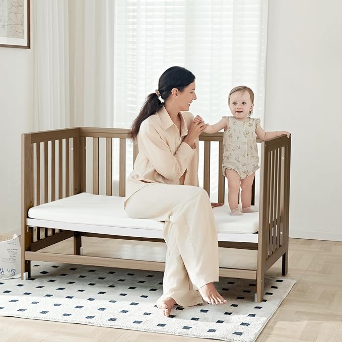 - Evonest‘s by Mamazing 6-in-1 Convertible Crib that Grows with Baby: Transitions from baby crib to cradle, playpen, mini sofa, daybed, and even a twin-size bed as your little baby grows. Includes easy-to-follow instructions for hassle-free assembly.