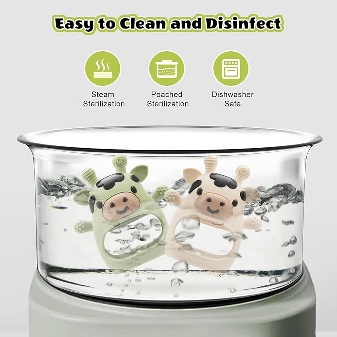 - Easy to Clean: This teether is designed to be easy to clean and sanitize. You can clean and sanitize it with steam, boiling water or a dishwasher, also wash it by hand with warm soapy water. This helps to keep your baby safe and healthy