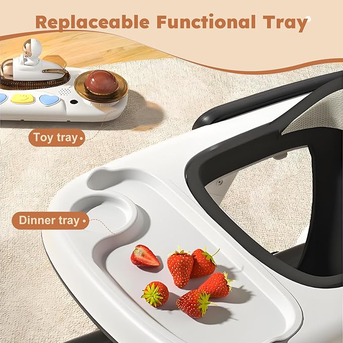 - 【Music toy light show】The baby walker has two functional plates: a music light show and a replaceable dinner plate. The music plate is a space planet theme game plate that provides a variety of music and light flashing effects, and there are astronauts, spaceships, planets, moons and other modeling accessories. Walkers for babies help early baby sensory development, stimulate curiosity, exercise the baby's limb coordination ability, and encourage exploration and learning to walk. Note: 2 AA batteries are required (not included)