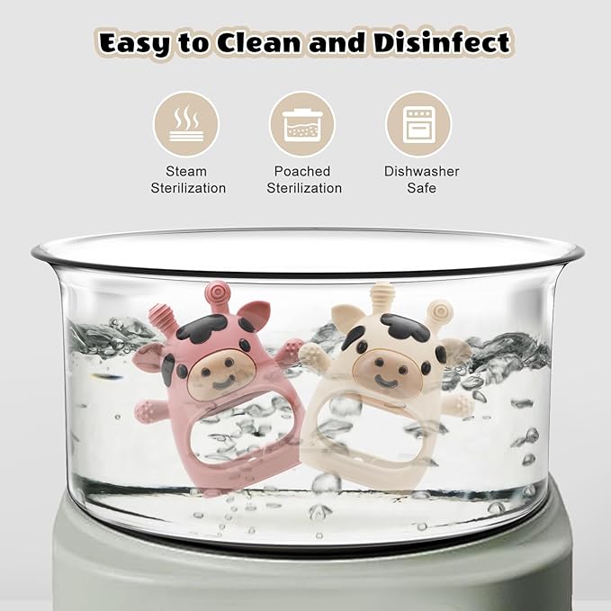 - Easy to Clean: This teether is designed to be easy to clean and sanitize. You can clean and sanitize it with steam, boiling water or a dishwasher, also wash it by hand with warm soapy water. This helps to keep your baby safe and healthy