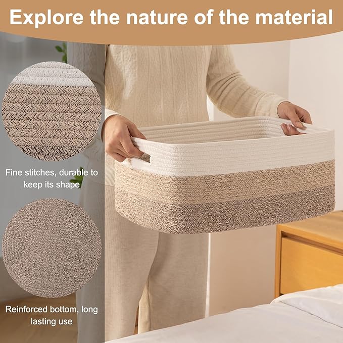 - Soft and Durable: Hand-stitched from high-quality natural cotton rope. Our baskets are very soft and baby-friendly. Seamless design, with no odor or sharp edges, not easy to tear, Great for nurseries storage and closet organization