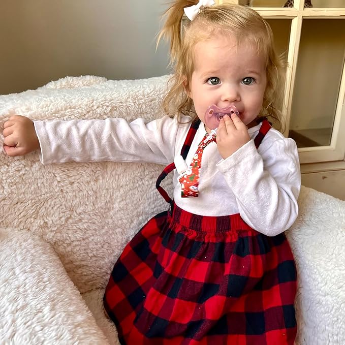 - Continuously Updating Design-We have many different designs and pattern:such as floral,fruit,rainbow,cute animals,solid colors,Halloween and Christmas,pacifier clip holder straps fit for baby boy and girl.chains clips work with most of the pacifier styles that have a ring part on it.6 pieces of plastic pacifier clips holders with a box(No pacifier included).