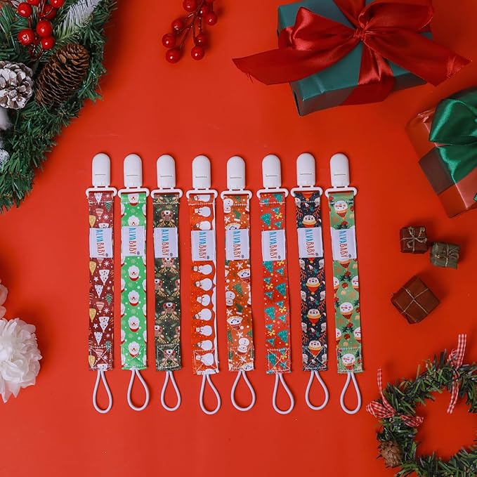 ALVABABY Pacifier Clip 8 Pack Binky Paci Clip Holder Leashes for Newborn Baby Boys Girls Christmas 8DBP04-DA