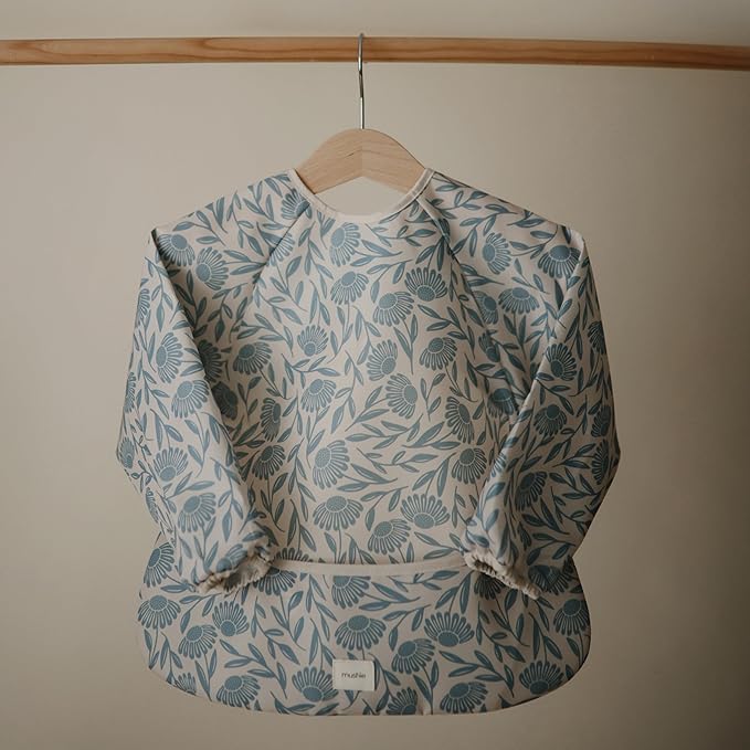 - Mess & Worry Free: Keep the kids clean at mealtimes, during art projects or in other messy moments with the mushie water resistant long sleeve bib.