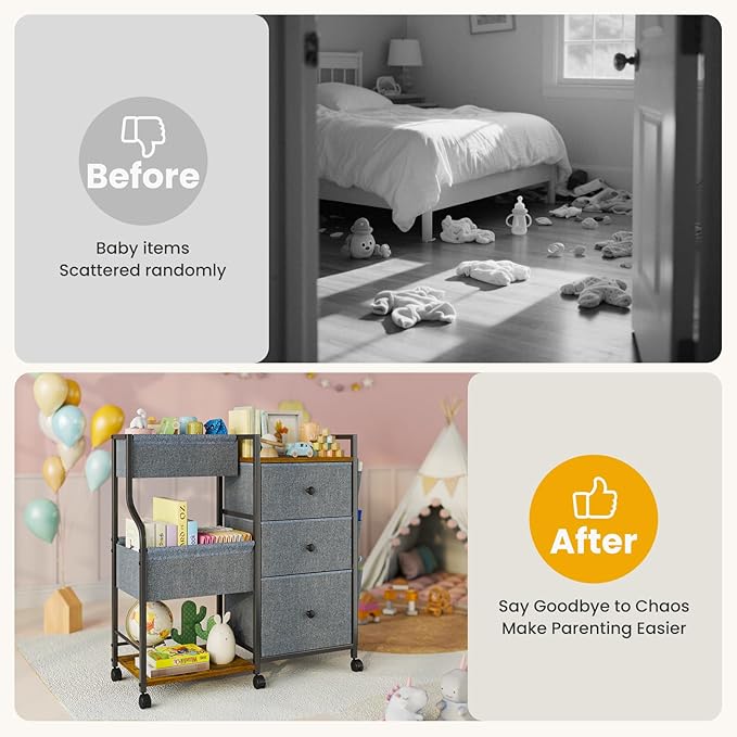 - 【Great Gift for New Parents】: The three tiers provide a massive amount of storage, and the dividers and drawers are perfect for keeping everything separated and tidy. The top tier use as a diaper changing station with diapers, wipes, and creams. The lower tiers are perfect for storing extra clothes, burp cloths, swaddles, and even a few toys. A practical and thoughtful gift for baby showers, new moms, or anyone looking to simplify their baby care routine
