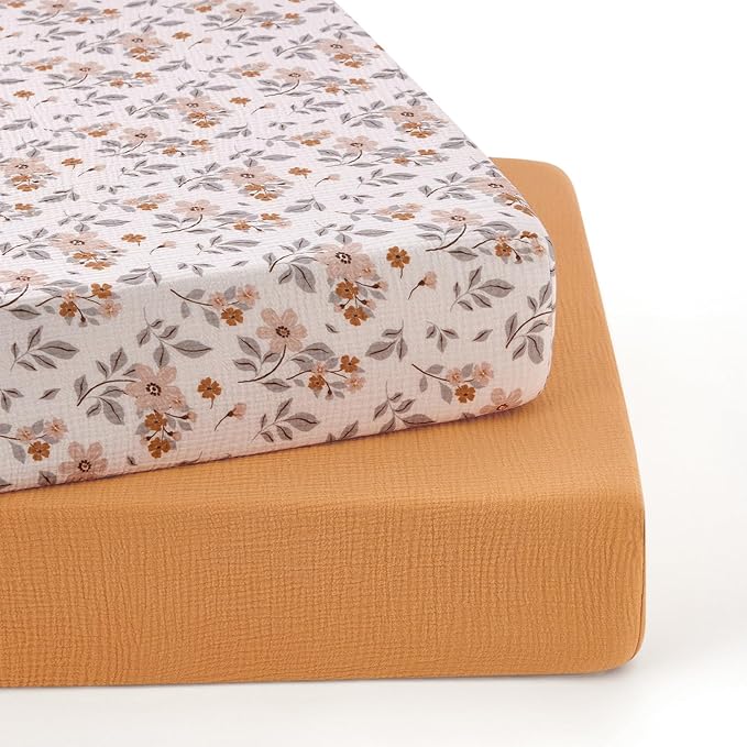 - Soft & Breathable: Crafted from 100% cotton muslin, baby crib sheet is ultra-soft, lightweight, and breathable—gentle enough for your baby's delicate skin. Our natural, non-toxic dyes ensure the fabric is hypoallergenic, odor-free, and completely safe for your little one's health.