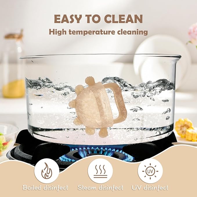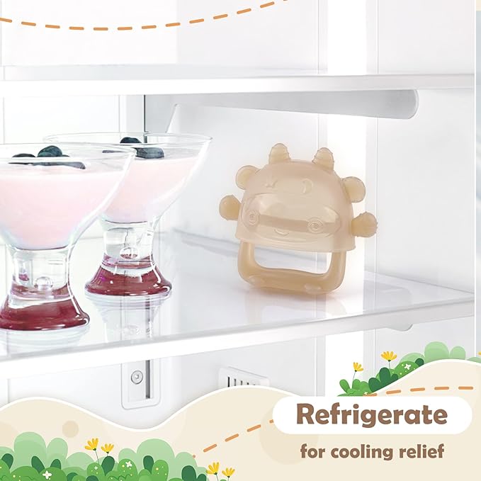 - 【Easy to Clean】: Our silicone teethers are easy to clean and maintain, making them hygienic for your baby to use daily. Simply wash with mild soap and water. These teething toys for babies 4 months is their ability to be chilled in the refrigerator. This cooling effect provides additional relief to my baby's tender gums.