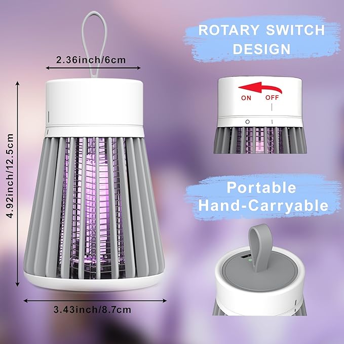 - 【Portable & USB Rechargeable Design】Lightweight and easy to carry, this portable mosquito zapper runs 6–8 hours per charge—ideal for camping, travel, or backyard use. The USB-rechargeable battery delivers long-lasting power, fitting perfectly into any mosquito trap outdoor setup.