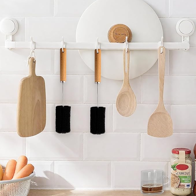 - Extended design: The extended wooden handle bottle brush can reach deep into the bottom of the bottle, fits tightly to the bottle body, and effectively cleans the dirt. The soft brush head will not damage the cup. The bottle brush can at least reach into the bottle with a mouth of 0.9 inches to clean. It can be hung for storage, convenient for draining, and saves space.