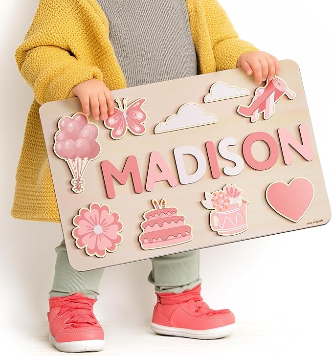- A Toy with Educational Benefits: Our custom name puzzle enhances motor skills, coordination, and focus. Promotes problem-solving, self-confidence, and happiness Introduces shapes, names, and spelling Encourages exploration and curiosity.