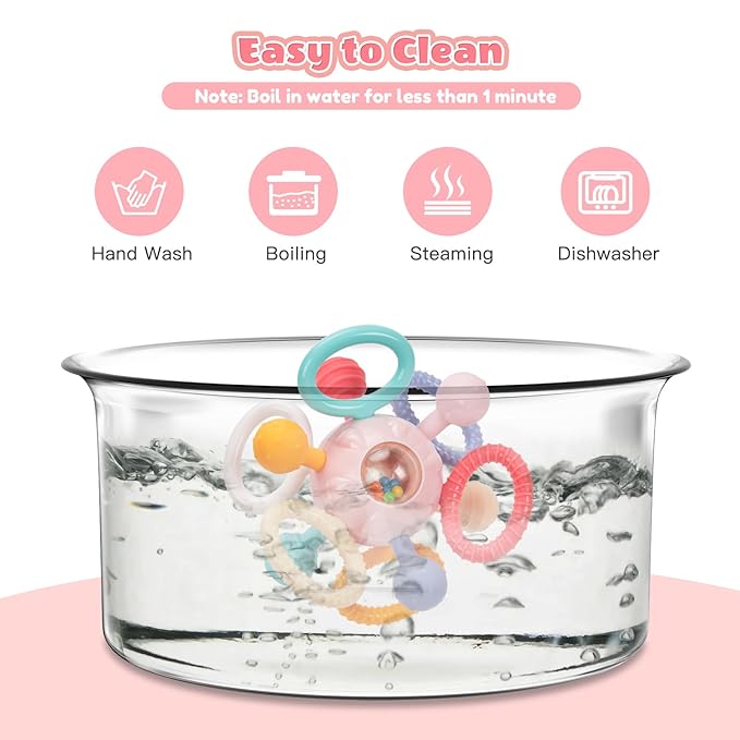 - Suitable Size: This teether is ideal for babies to grasp and easy to fit in a diaper bag. Keeps babies busy for a long time, a must-have travel toy when baby is on the go, great for car or plane trip