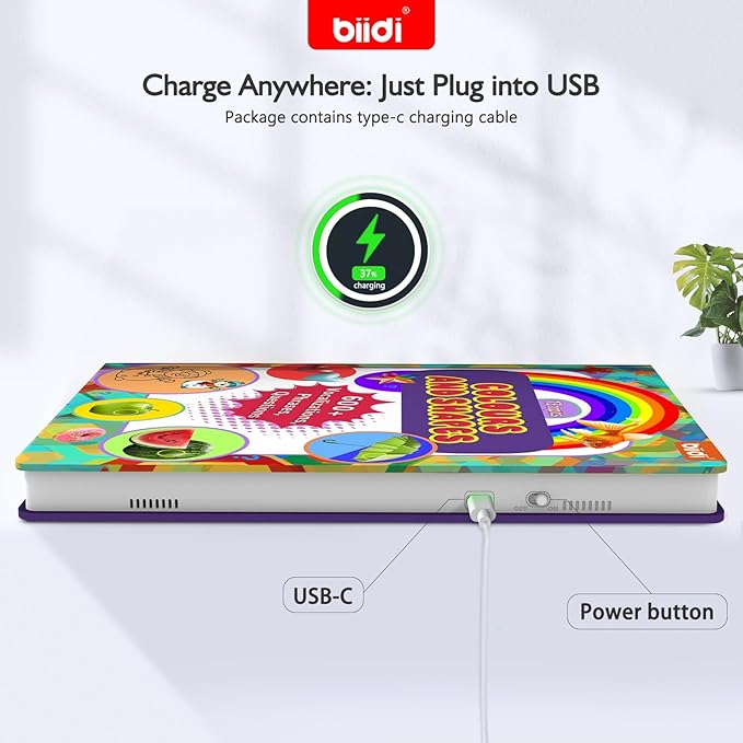- Durable Design & Type C: Tear-resistant and waterproof book pages, carefully bound, the talking book with rounded corners that are safer for toddlers 3-5. Simple and convenient TYPE-C charging port is more reliable, and up to 6 hours of continuous use at moderate volume!