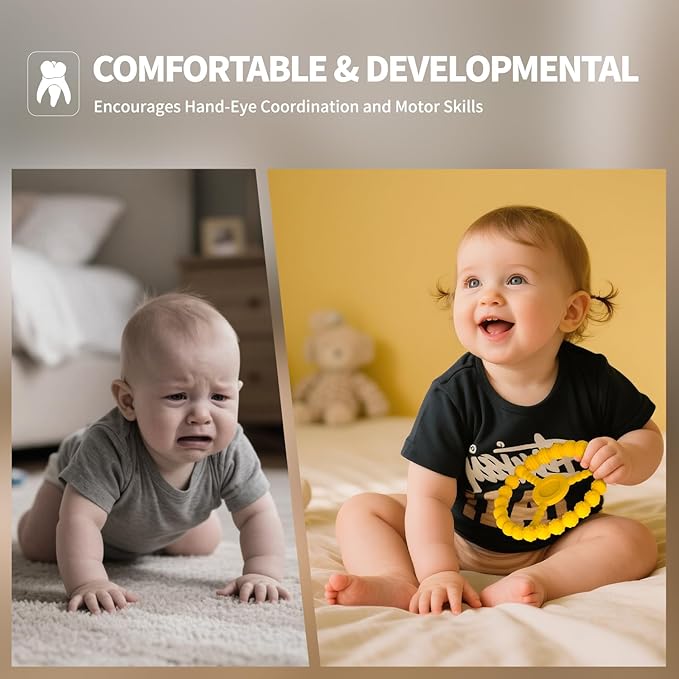 - Encourages Developmental Growth & Engagement: These silicone teethers promote hand-eye coordination and motor skills. Textured baby teether toys offer safe chewing, providing endless engagement for active play and ensuring comfort for babies 0-12m.