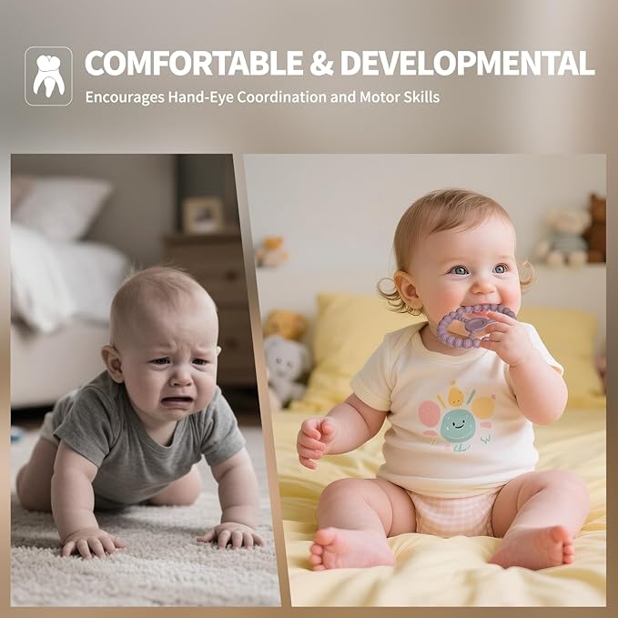 - Perfect Gift for Infants: These colorful teether toys are for baby boys & girls aged 0-18 months. Perfect for baby shower gifts, birthday presents or Easter teether gifts, they support cognitive development while providing essential teething relief.