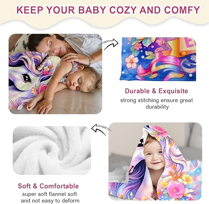 - 【Personalized Baby Gift Idea】Searching for the perfect gift can be overwhelming. A customized kid blanket demonstrates just how much you care, reflecting the time and effort put into creating something truly unique for that special person. Perfect for special events and unforgettable moments such as a Baby's First Month Celebration, Birthdays, Baby Showers, Housewarmings, Easter Gifts, Mother's Day, Thanksgiving, Christmas and more