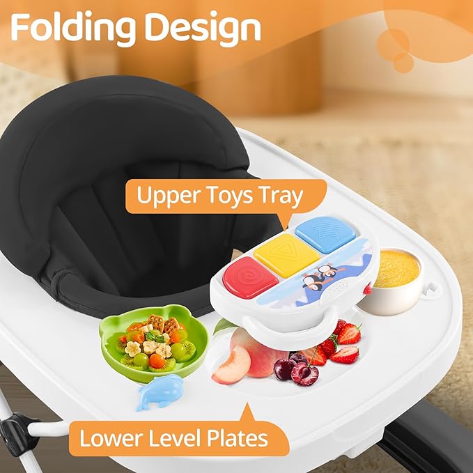 Foldable Baby Walker with Wheels, 3 Height Settings, 4-in-1 Activity Center for 6-18 Months with Tray, Music & Removable Footrest