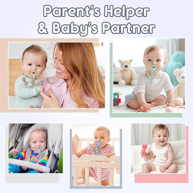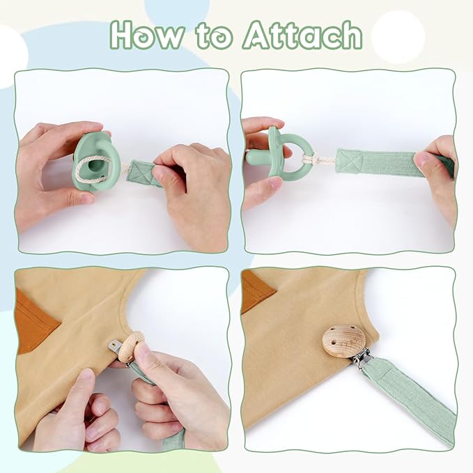 - Upgraded Wooden Stainless Steel Clips: The clip head has three holes to avoid choking, making it safer for babies; The metal clasp on the pacifier clip is strong and secure, we upgraded it with stainless steel material, no rust after use. The metal clip that attaches to clothing has a wooden cover to protect the skin from becoming scratched.