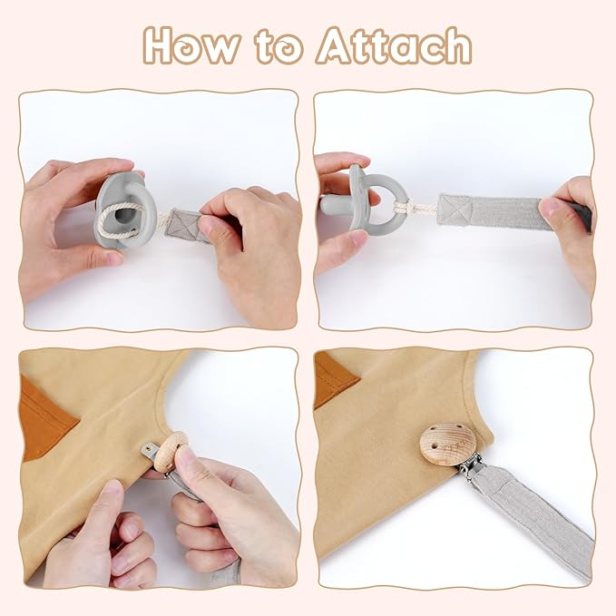 - Upgraded Wooden Stainless Steel Clips: The clip head has three holes to avoid choking, making it safer for babies; The metal clasp on the pacifier clip is strong and secure, we upgraded it with stainless steel material, no rust after use. The metal clip that attaches to clothing has a wooden cover to protect the skin from becoming scratched