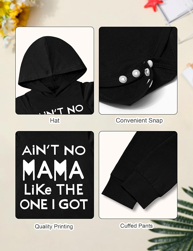 • Design: Our baby boy clothes adopts the classic and fashionable hooded sweater design. It is comfortable and warm at the same time. It can prevent strong wind from blowing directly on the baby boy's head. The clothes are printed with 'AIN'T NO MAMA LIKE THE ONE I GOT', expressing the baby boy's love for his mother.