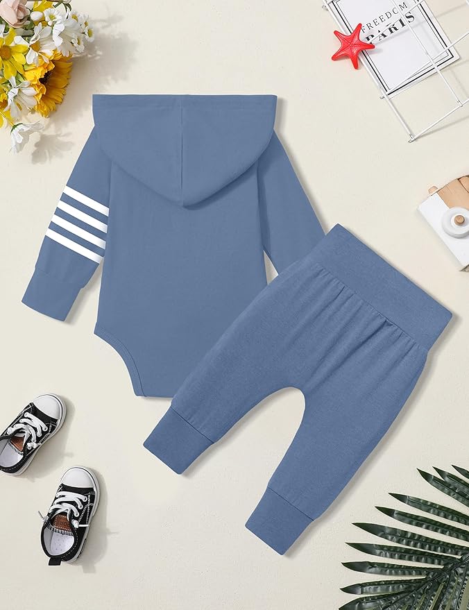 - Package includes: Our baby boy clothes has two clothes, including a blue long-sleeved hooded + a pair of blue trousers