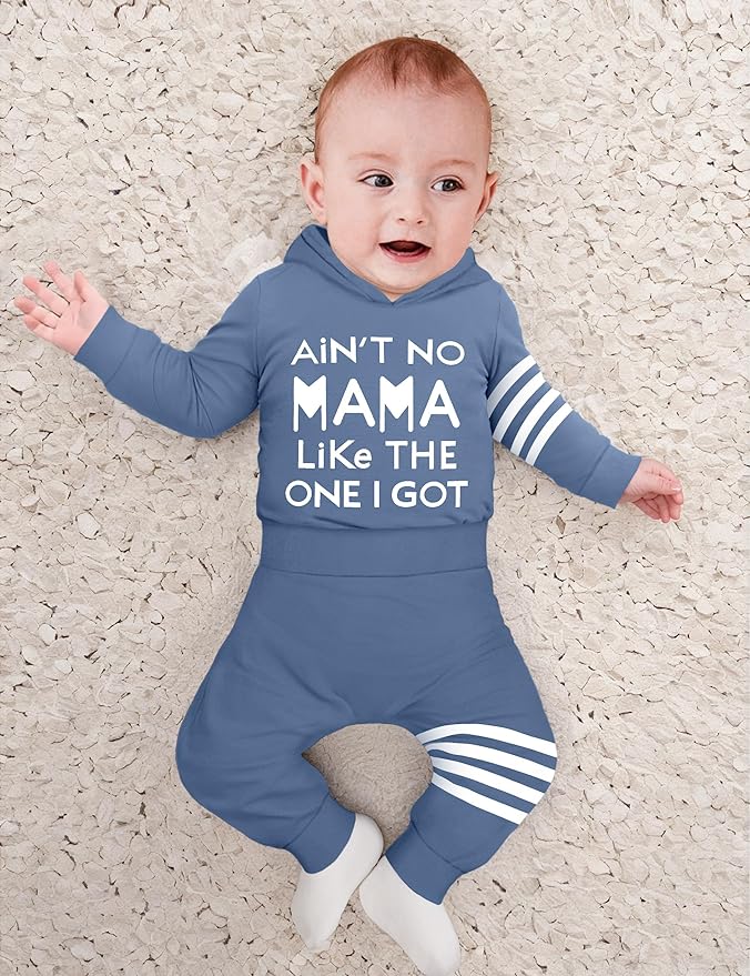 - Design: Our baby boy clothes adopts the classic and fashionable hooded sweater design. It is comfortable and warm at the same time. It can prevent strong wind from blowing directly on the baby boy's head. The clothes are printed with 'AIN'T NO MAMA LIKE THE ONE I GOT', expressing the baby boy's love for his mother.