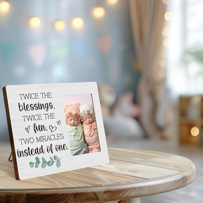 Twins Picture Frames Baby Items Twin Boys Girls Gifts For Mom Twice The Blessings Fun Two Miracles Instead of One Signs Photo Frame Table Desk Decor for Home Livingroom Bedroom Picture1802