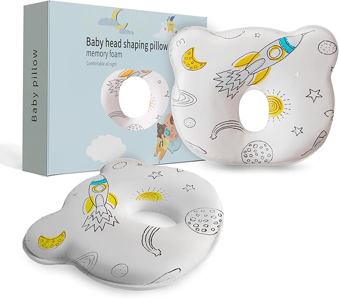 Soft and Breathable Baby Pillow with Memory Foam and Bear Design (White Cosmic)