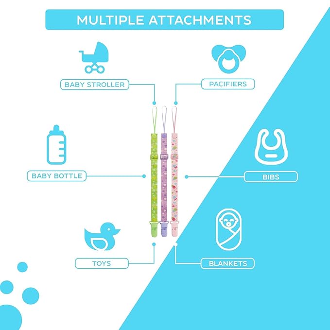 - Adjustable 32-46.5cm Starp for Multi-scene Use : Customize length in seconds! Securely attaches pacifiers/toys to strollers, car seats, diaper bags, and high chairs without tangling.