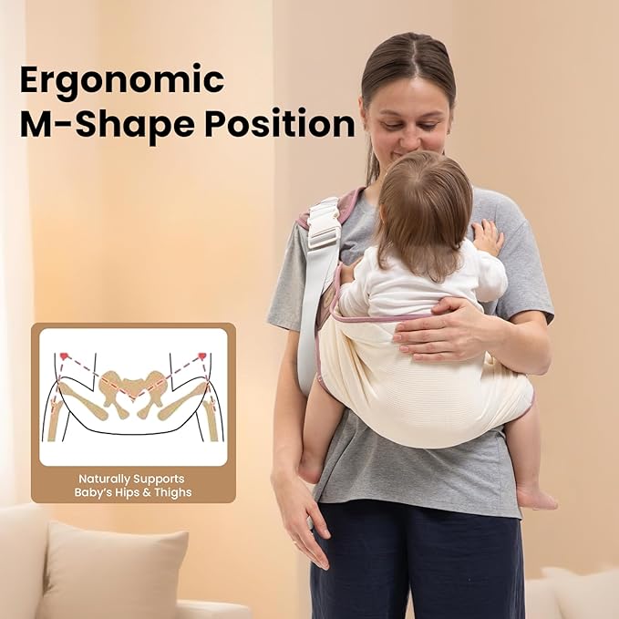 - 【Adjustable & Ergonomic Fit】This toddler sling carrier features dual front and back adjustable straps, offering a perfect fit for all body types, including plus-size parents. Its ergonomic M-shaped seat supports healthy hip development, making it ideal for long-term use from newborn to toddler.