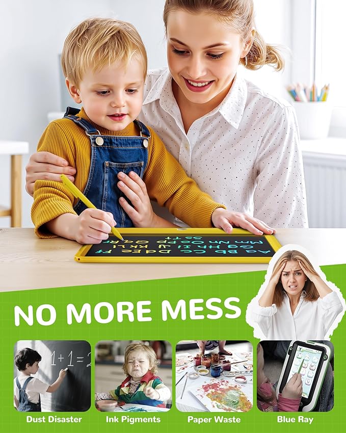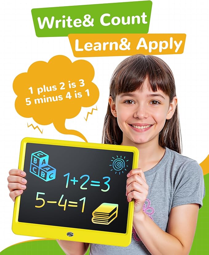 KOKODI LCD Writing Tablet, 12 Inch Colorful Toddler Doodle Board Drawing Tablet, Erasable Reusable Electronic Drawing Pads, Educational and Learning Toy for 3-6 Years Old Boy and Girls(Yellow)