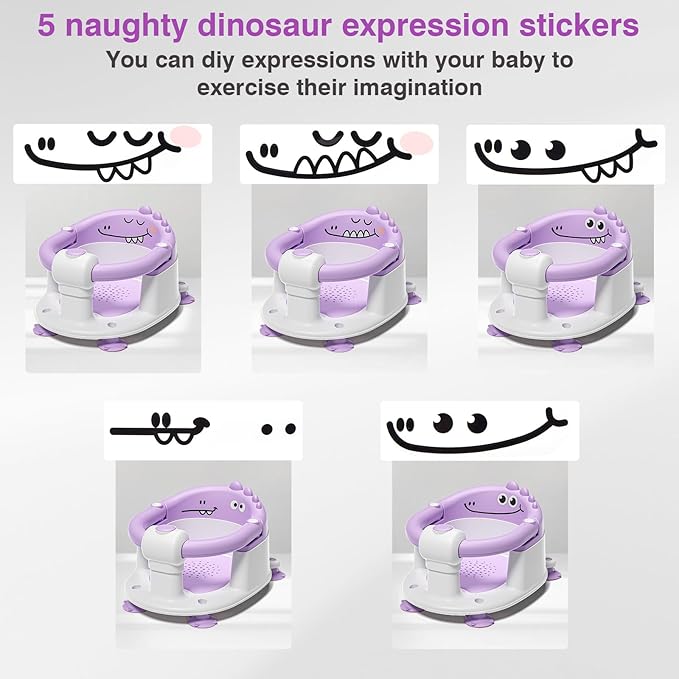 - 【Safe & Secure Bathing】 Our baby bath seat features 4 ultra-strong suction cups that firmly attach to any smooth surface (ceramic, acrylic...), preventing slips and tipping. Made from BPA-free PP+TPR materials, it provides a 360° stable support system for babies 5-10 months, ensuring worry-free bath time.
