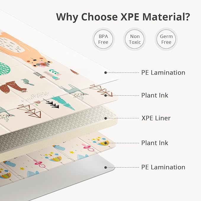 - Safe Materials:The playmat are made of high density XPE foam and vegetable ink material, odorless, non toxic, BPA free and not easy to tear;Provide the safest protection for moms,babies and toddlers