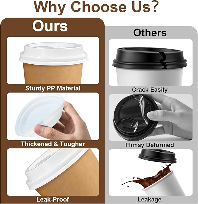 - Sturdy & Leak-Proof: These lids fit snugly over cups to effectively prevent spills and keep heat in the cups. Enjoy your coffee without the worry of burns or mess, ensuring a comfortable drinking experience