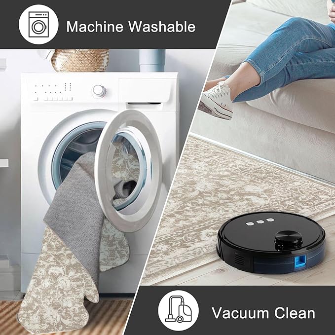 - Machine Washable Runner: This carpet runner is easy to clean—machine washable, vacuum, sweep, or wipe with a cloth. Use a low-speed vacuum to avoid bunching, as its thin, lightweight design may shift with stronger vacuums. Avoid bleach to preserve color