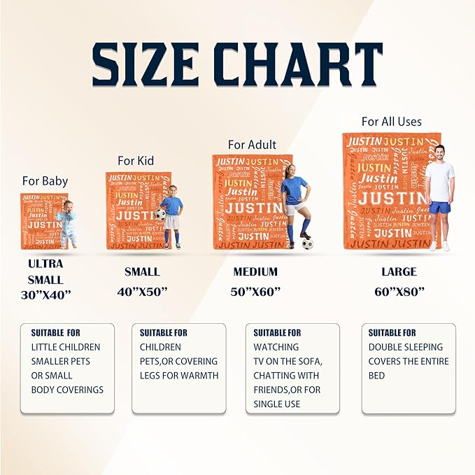 - Multiple Sizes & Colors Baby Blanket -- custom name blanket are available in 5 colors and 4 sizes: 30"x40" , 40"x50" , 50"x60" (single beds), 60"x80" (family movie nights).Select your loved one’s favorite shade to create a treasured keepsake that infuses their world with color. Thoughtfully crafted for both gifting and everyday cuddles, these blankets grow with your child while keeping memories vivid wash after wash.