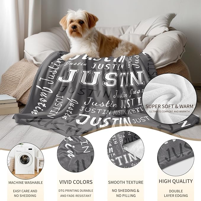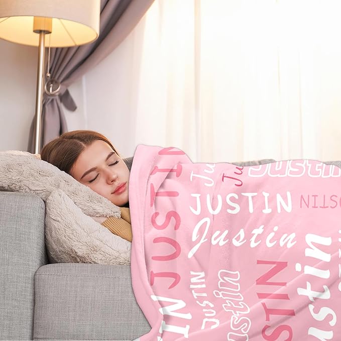 - Custom Blanket with Name -- Design your own plush, ultra-soft microfleece blanket printed with a name or message of your choice! Click the 'Customize Now' button to select your favorite color and size, then add your personal text – you’ll create a one-of-a-kind keepsake perfect for cozy moments.