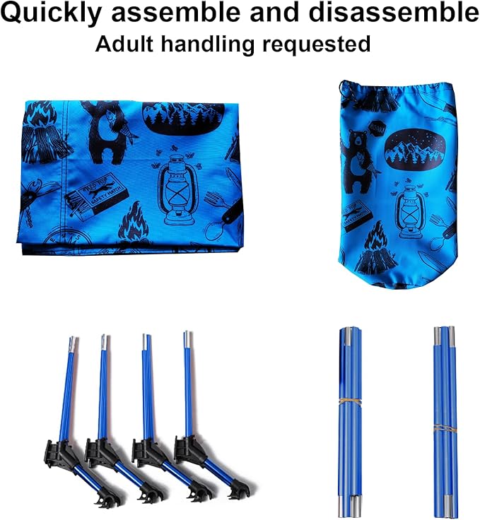 - Adventure Theme Camping Cot: The Adventure kids cot belongs to our KidzAdventure family, a product line specifically designed to bring more fun to our young friends. The kids tent features lovely characters of little forest bear, campfire, compass and camping lantern, etc. The kids are best at their imaginations. Either indoor or outdoor, they are going to love living with these cute friends!
