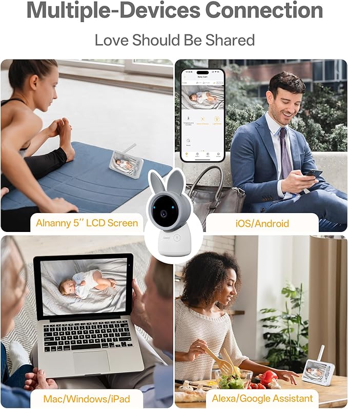 - Bigger and Clearer: 5-inch 720P color LCD screen with a 360-degree baby camera, support 4x digital zoom, you can see what babies do clearly.