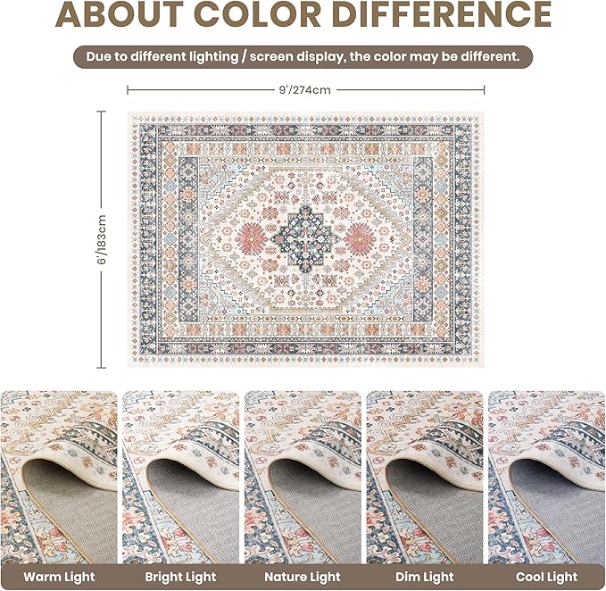 zesthome 6x9 Area Rug, Super Soft Washable Rugs for Living Room, Non-Slip Stain Resistant Vintage Rugs, Ultra-Thin Large Area Rugs (Multi,6'x9')