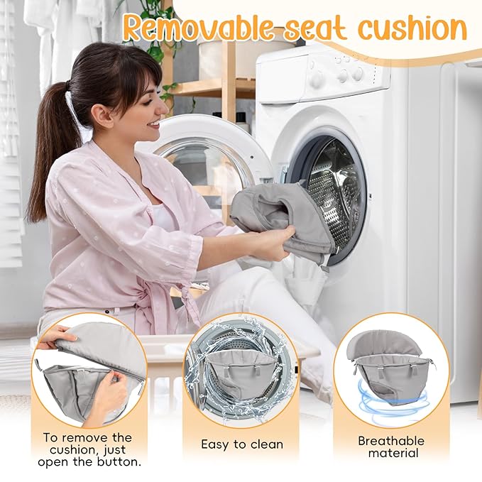 - [Removable seat cushion] : The seat cushion of the baby walker can be removed without the need for tools, so it can be cleaned and replaced . Meanwhile, the foot holes of the cushion are relatively small, which can fix the position of the child.
