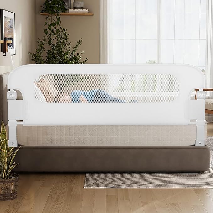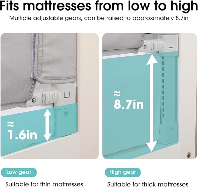 - Swing-Down Design: Lets kids climb in/out independently. The silent fold mechanism operates smoothly (no annoying squeaks!), so lowering it won't wake a sleeping child. Unlike other rails, it tucks neatly against the mattress