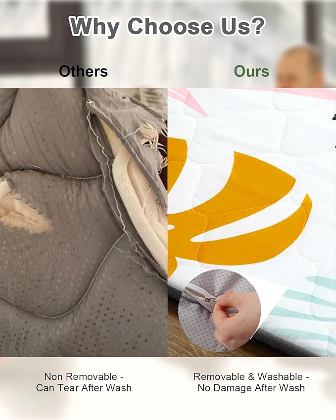 - Easy to Clean: With a removable, machine-washable cover, this play mat is designed for easy maintenance. Simply remove the cover and toss it in the washer, making cleanup quick and hassle-free.